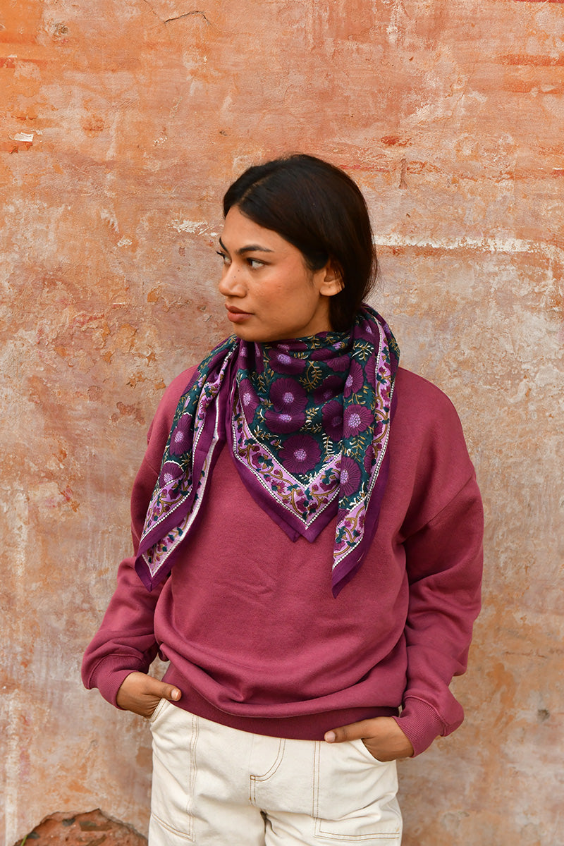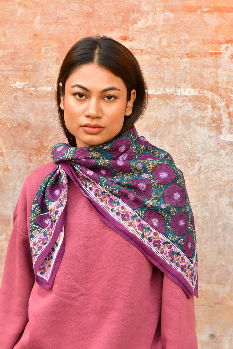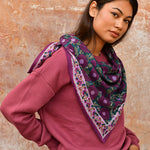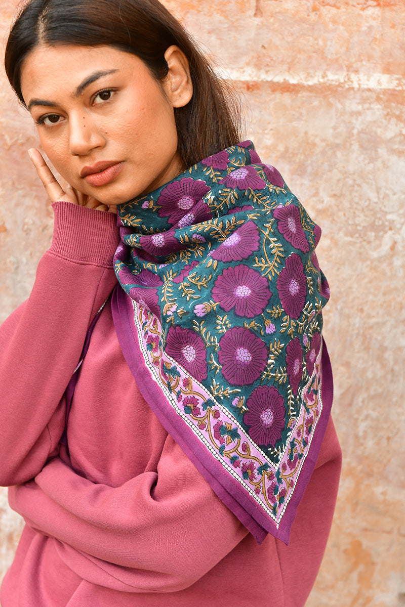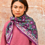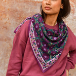 Un vert profond et de jolies fleurs pour ce grand foulard Ravenne Prune qui deviendra vite un incontournable de votre garde-robe.