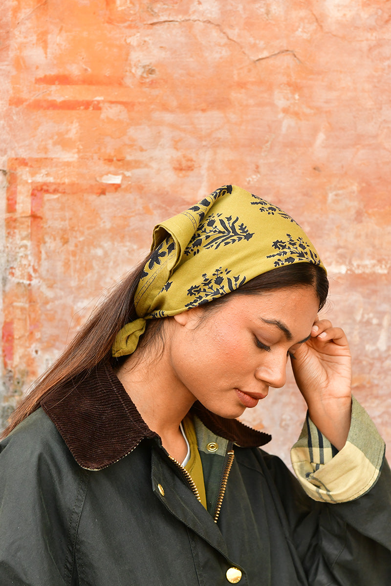 🖐️ Grand foulard imprimé artisanalement dans un atelier du nord de l'Inde, au Rajasthan. L'impression se fait selon le savoir-faire traditionnel de l’impression au block print, avec des tampons de bois taillés et sculptés à la main, trempés dans des encres d’origine végétale et apposés manuellement sur le tissu, en plusieurs couches, avec une maîtrise époustouflante. Des irrégularités d’impression et des nuances de couleurs sont visibles et reflètent la beauté de ce travail artisanal traditionnel. Chaque pièce est donc unique !