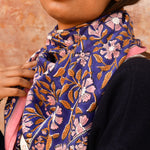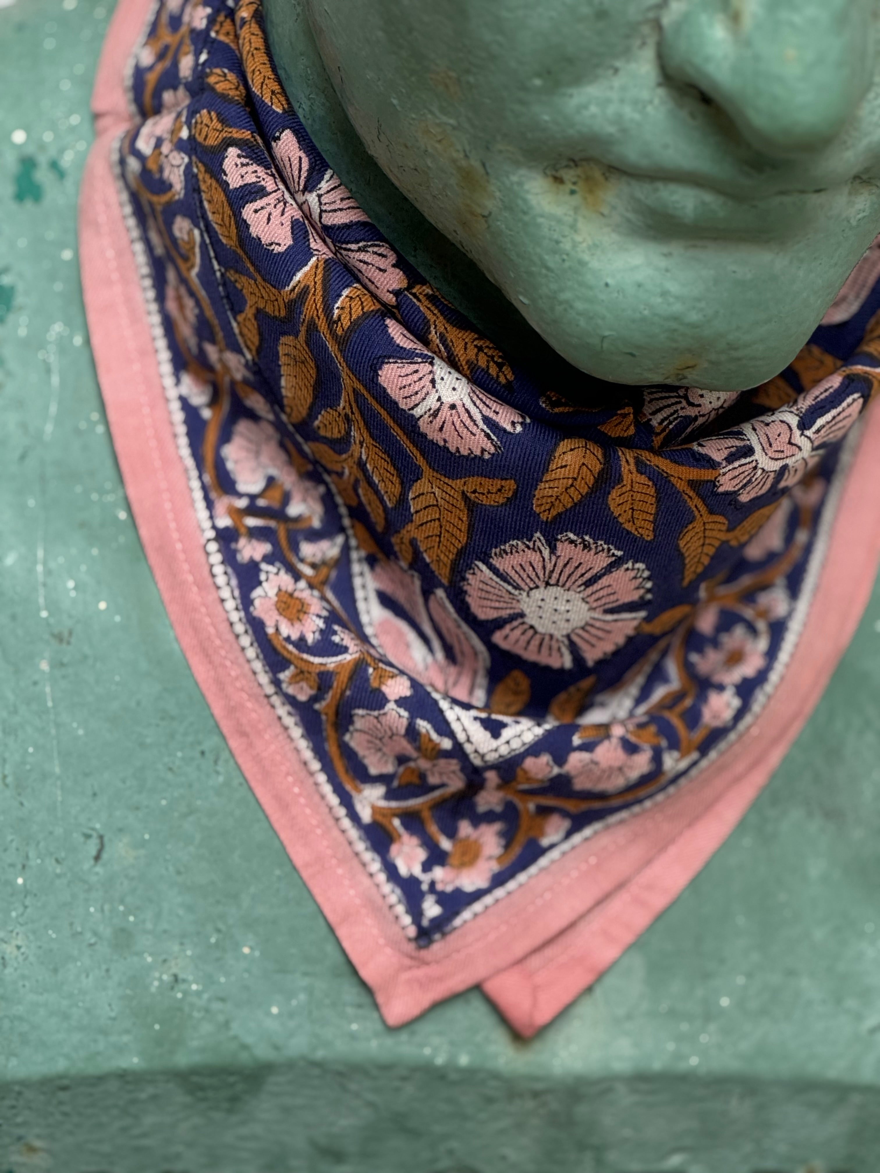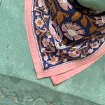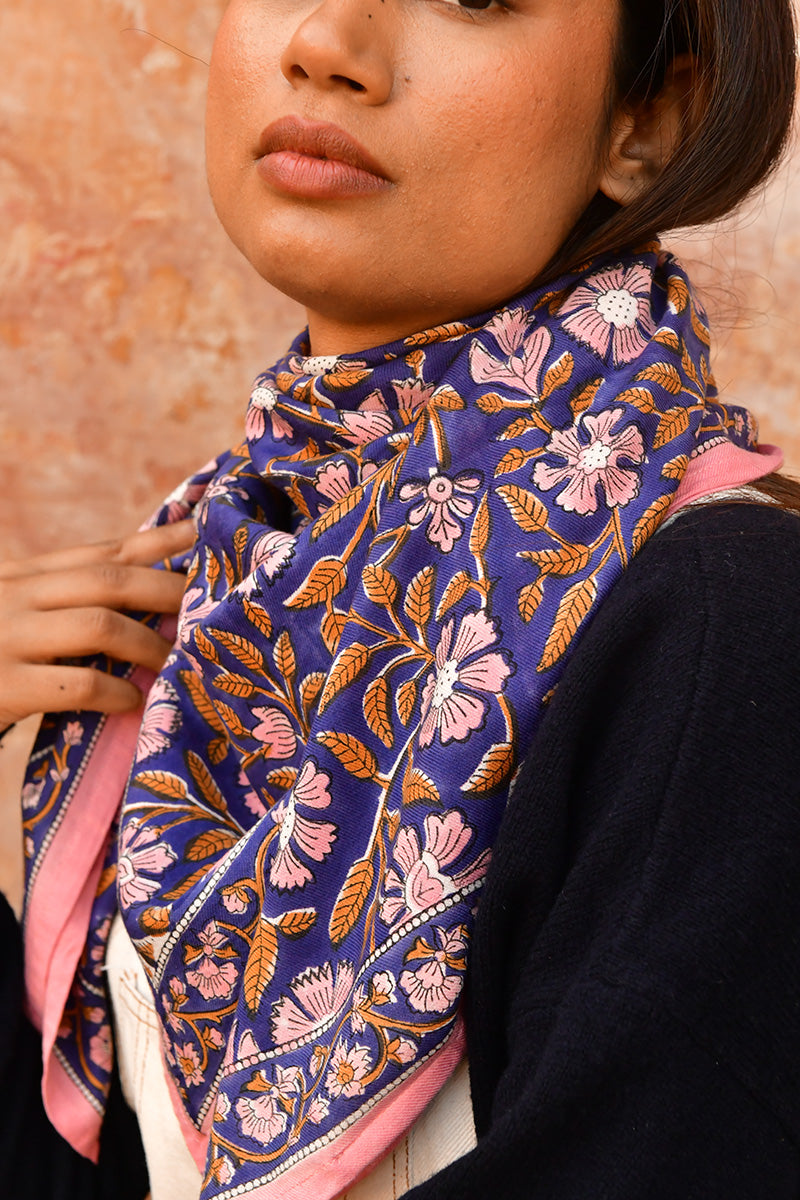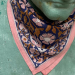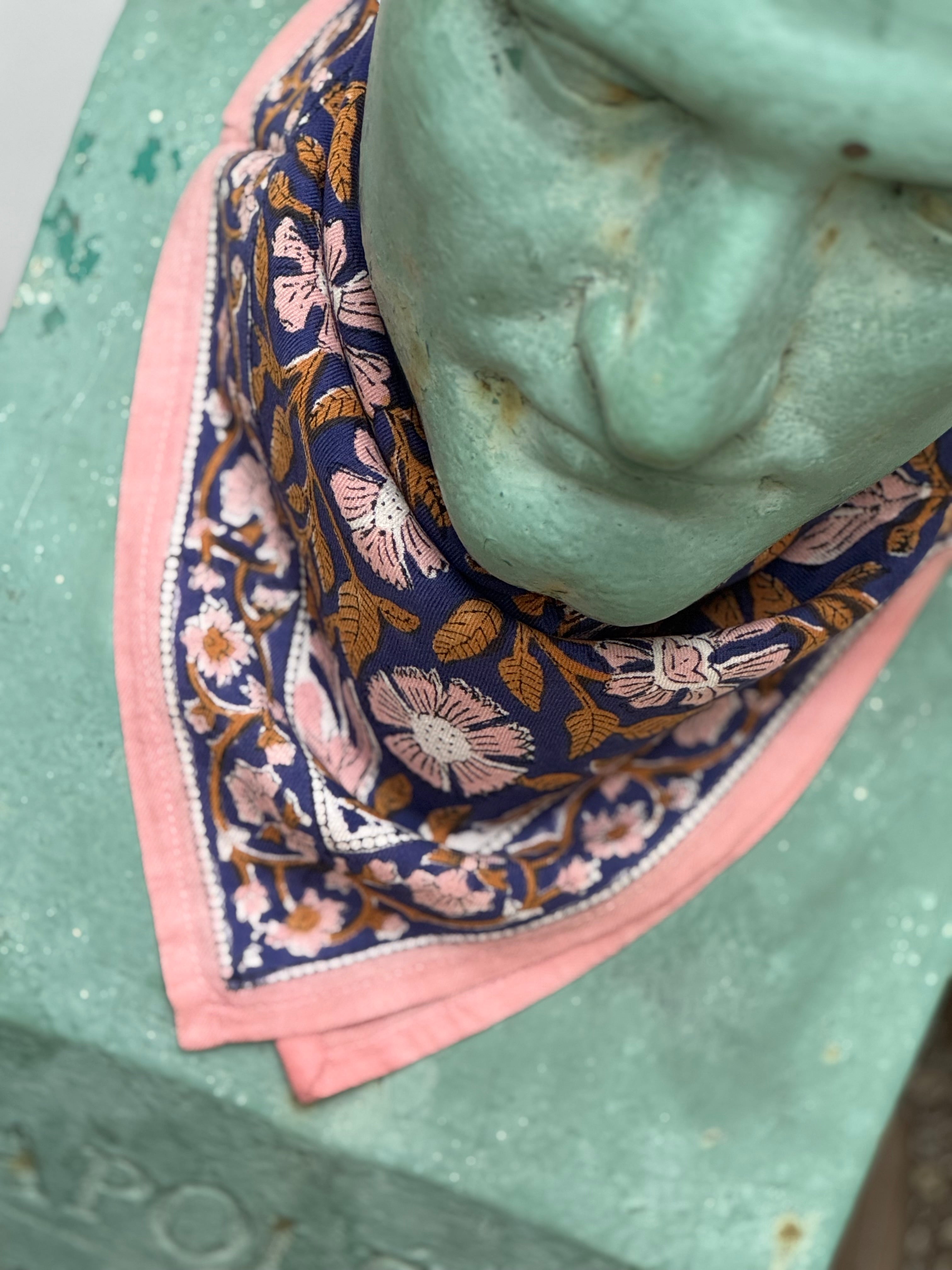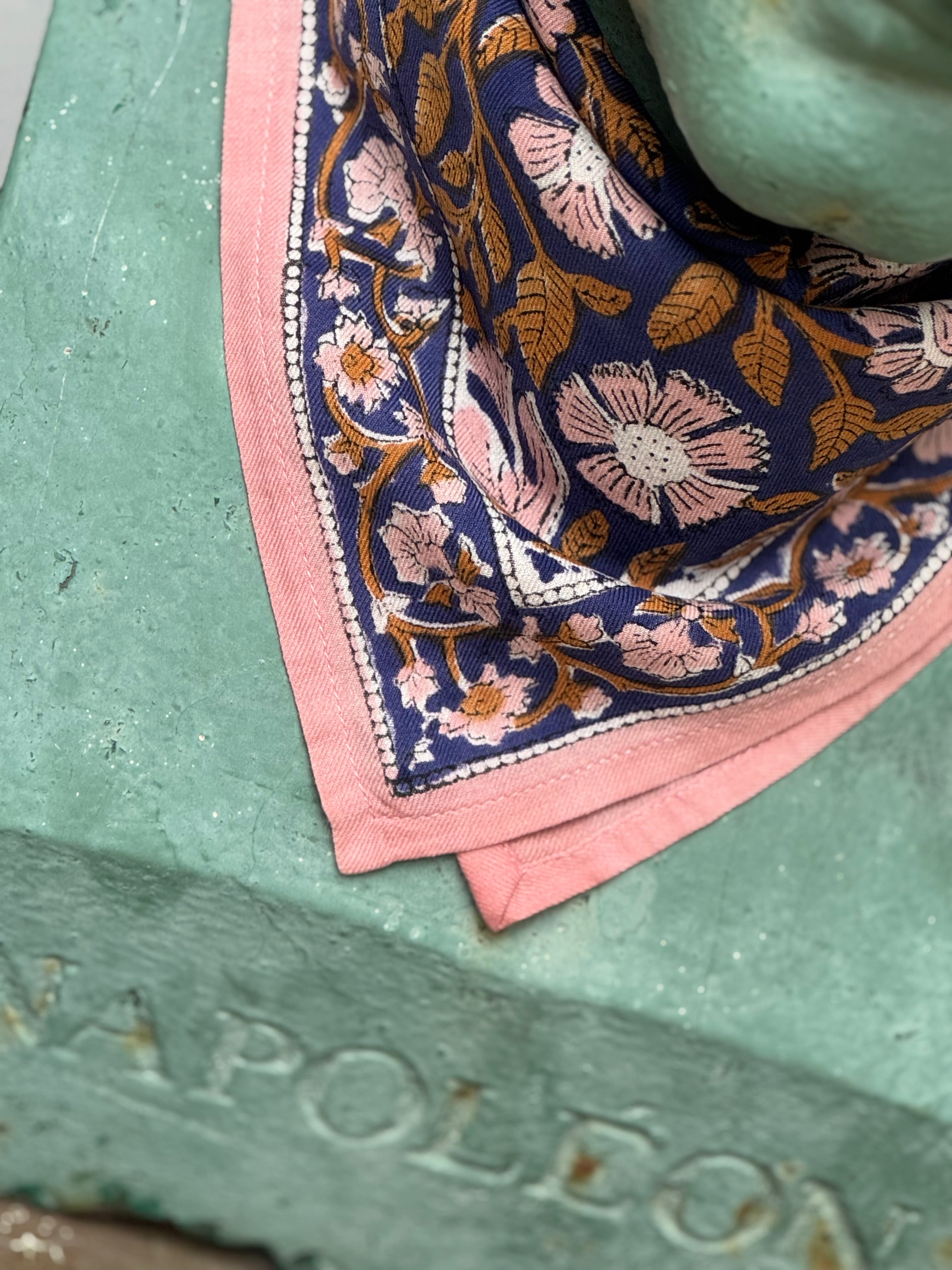 🖐️ Grand foulard imprimé artisanalement dans un atelier du nord de l'Inde, au Rajasthan. L'impression se fait selon le savoir-faire traditionnel de l’impression au block print, avec des tampons de bois taillés et sculptés à la main, trempés dans des encres d’origine végétale et apposés manuellement sur le tissu, en plusieurs couches, avec une maîtrise époustouflante. Des irrégularités d’impression et des nuances de couleurs sont visibles et reflètent la beauté de ce travail artisanal traditionnel. Chaque pièce est donc unique !