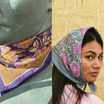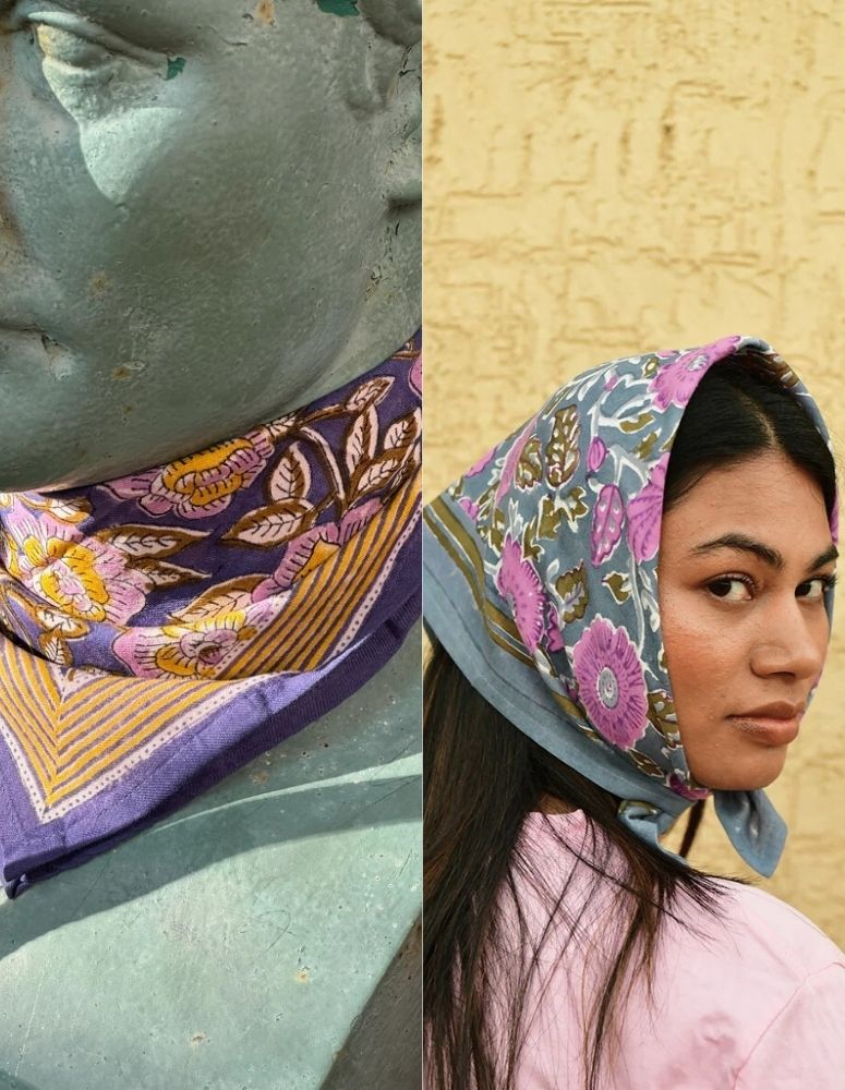 Plongez dans une palette de bleus avec ce duo harmonieux de petits foulards en block print indien.