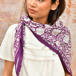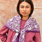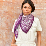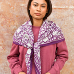 Un foulard bicolore et fleuri facile à porter. Le grand foulard Antioche Prune, avec ses coloris violet prune et écru, apportera une légère touche d'originalité à toutes vos tenues.