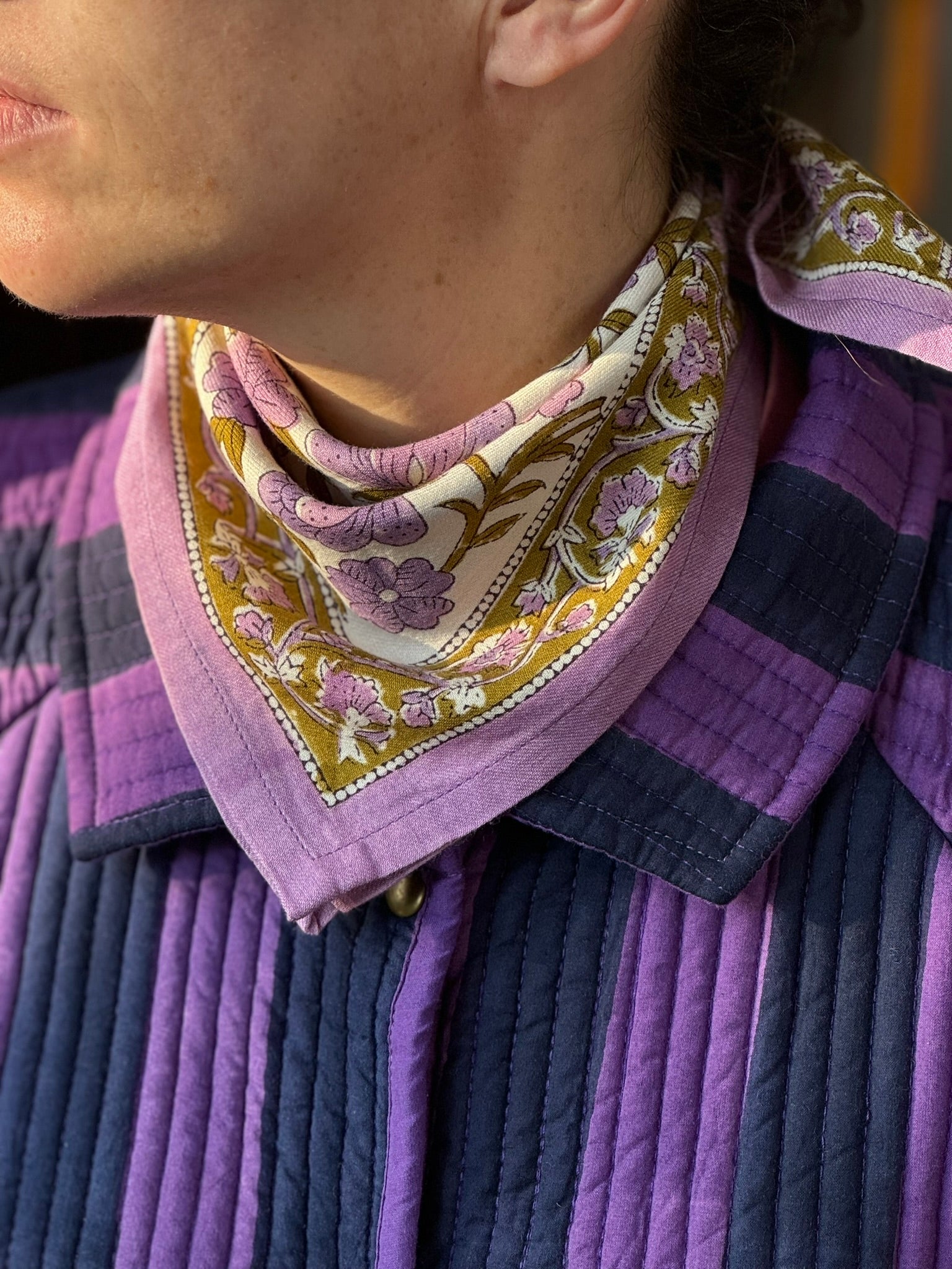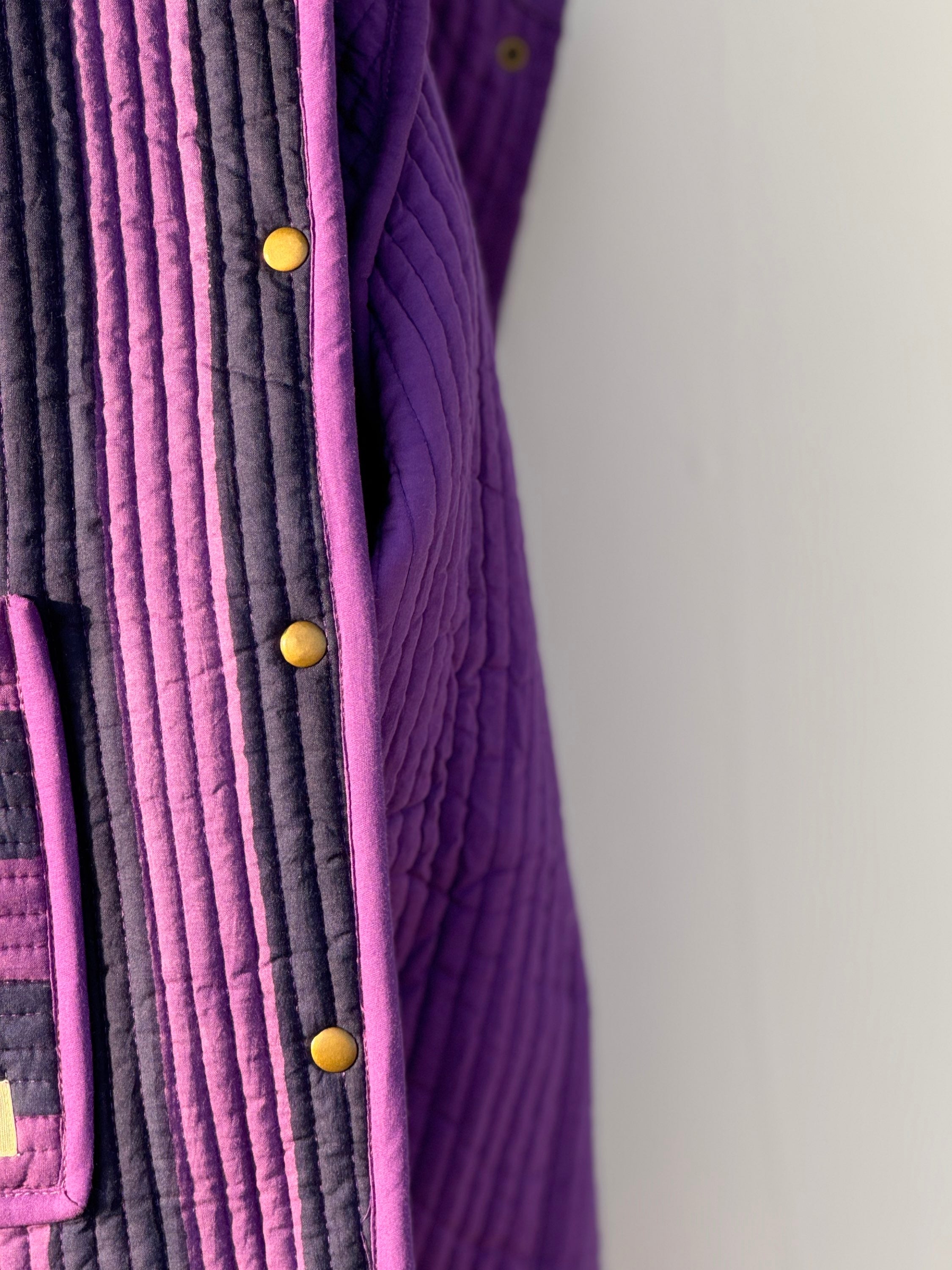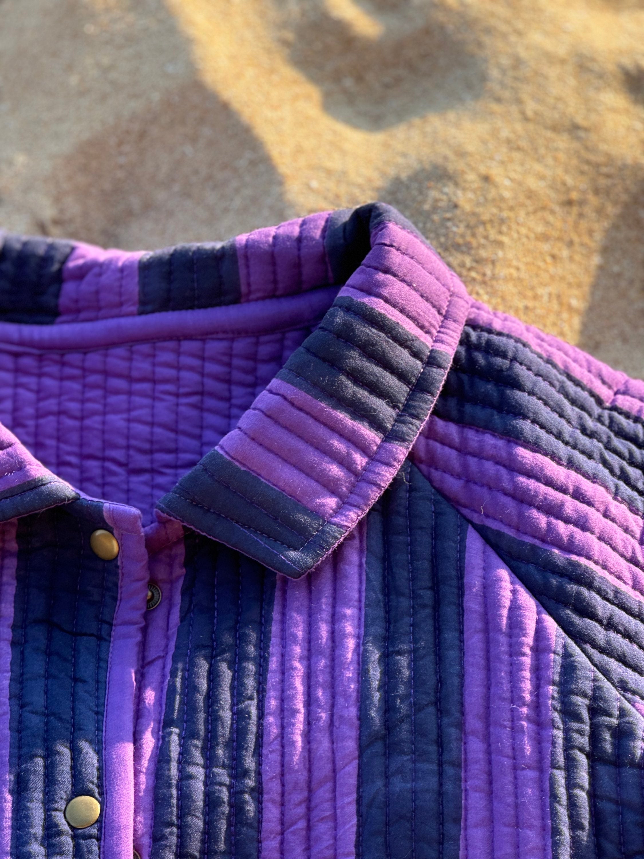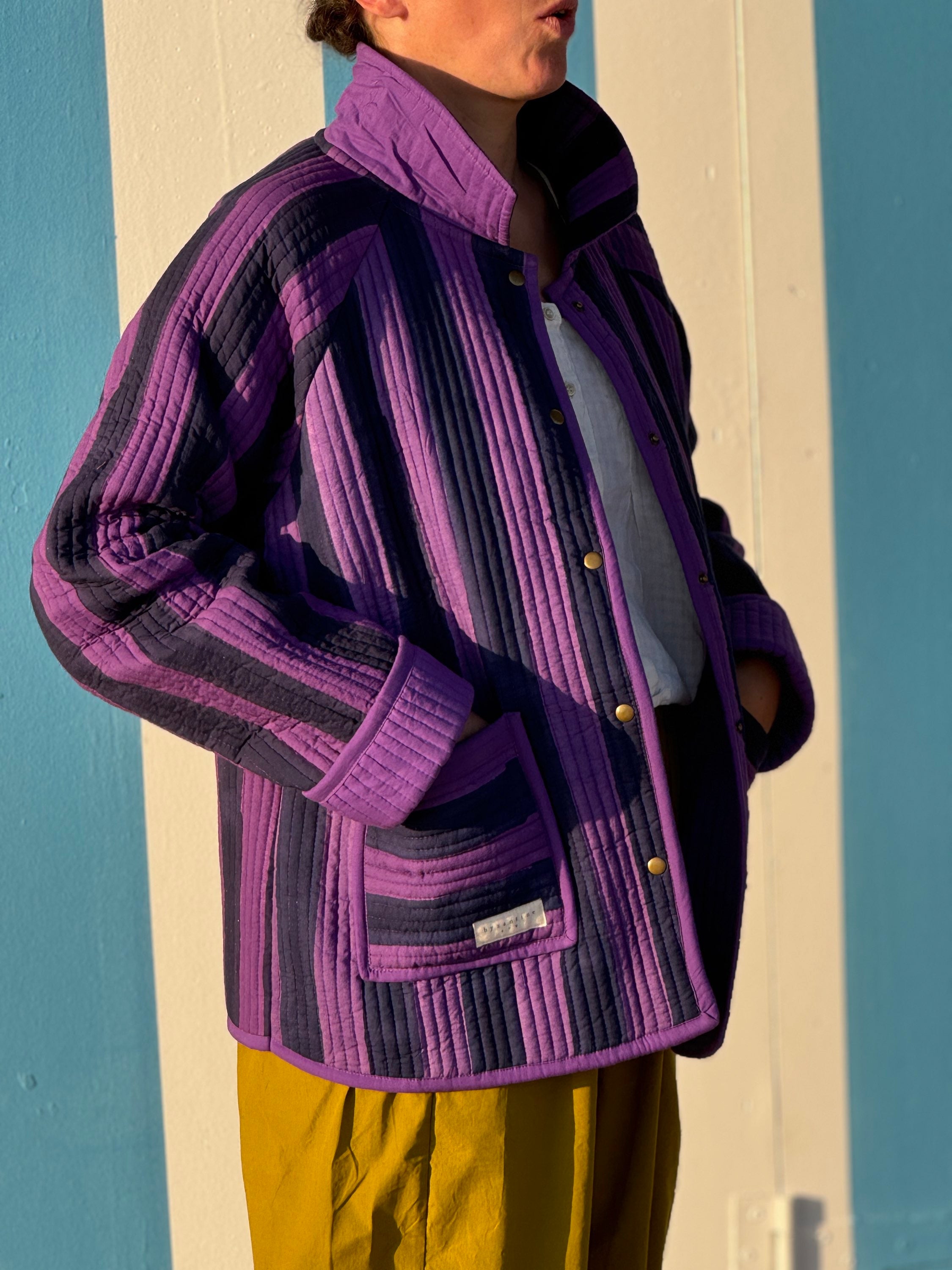 Découvrez notre veste matelassée en blockprint à grosses rayures, une pièce unique qui attire tous les regards et convient à toutes les morphologies.