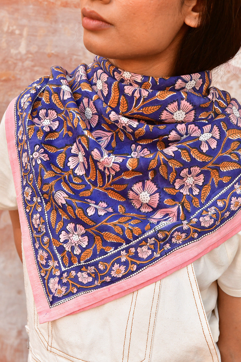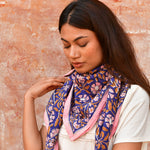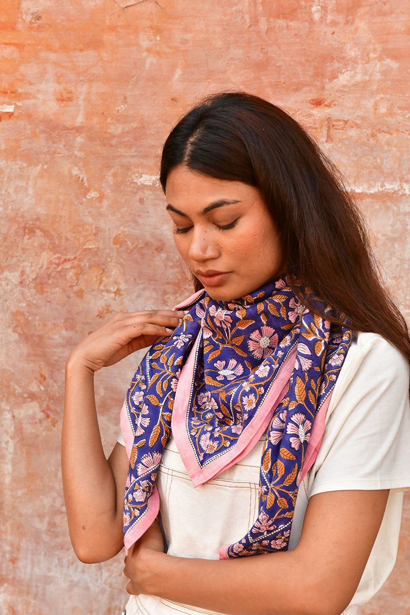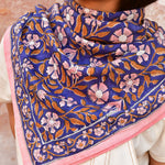 L'accessoire incontournable qui pimpera toutes vos tenues avec son fond au bleu profond et envoutant et ses fleurs rose qui vous donneront bonne mine !