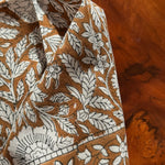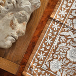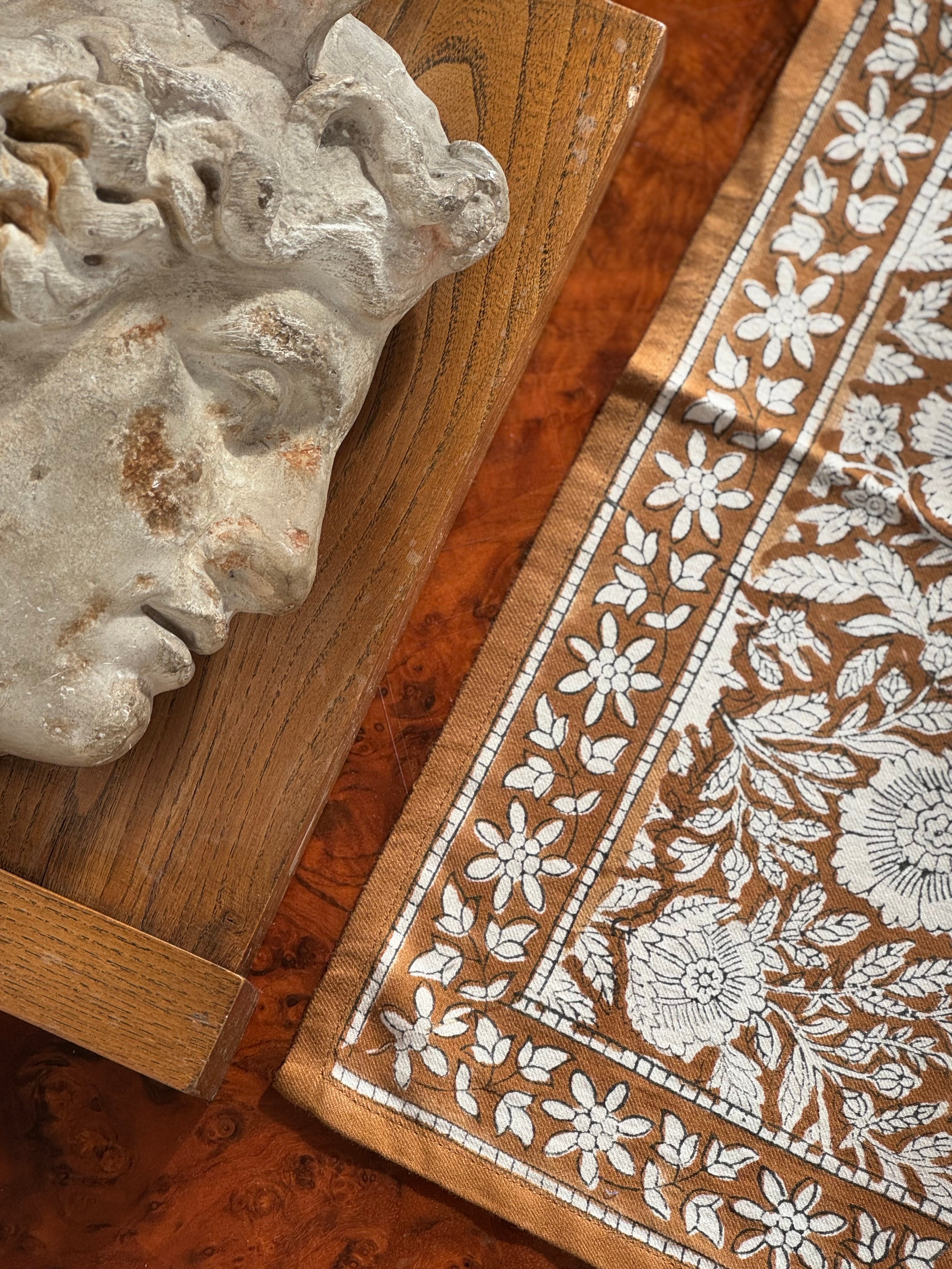 🖐️ Grand foulard imprimé artisanalement dans un atelier du nord de l'Inde, au Rajasthan. L'impression se fait selon le savoir-faire traditionnel de l’impression au block print, avec des tampons de bois taillés et sculptés à la main, trempés dans des encres d’origine végétale et apposés manuellement sur le tissu, en plusieurs couches, avec une maîtrise époustouflante. Des irrégularités d’impression et des nuances de couleurs sont visibles et reflètent la beauté de ce travail artisanal traditionnel. Chaque pièce est donc unique !