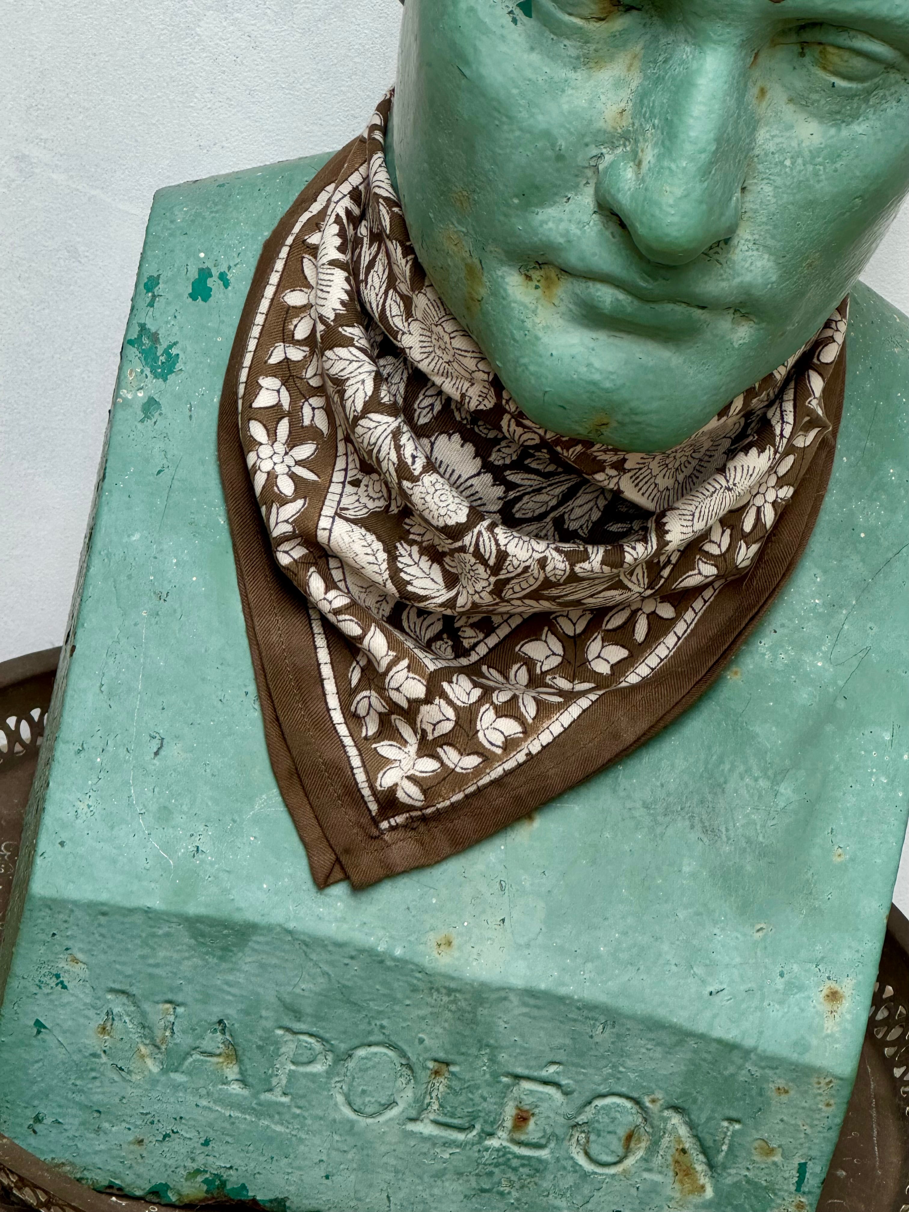 Laissez-vous séduire par le petit foulard Antioche Kaki, orné de grandes fleurs écru qui illuminent chaque tenue. Sa couleur kaki distinctive, savant mélange de marron glacé et de vert, s'harmonise avec aisance à vos pièces préférées, en toute saison. Un accessoire intemporel que vous adorerez porter et partager.
